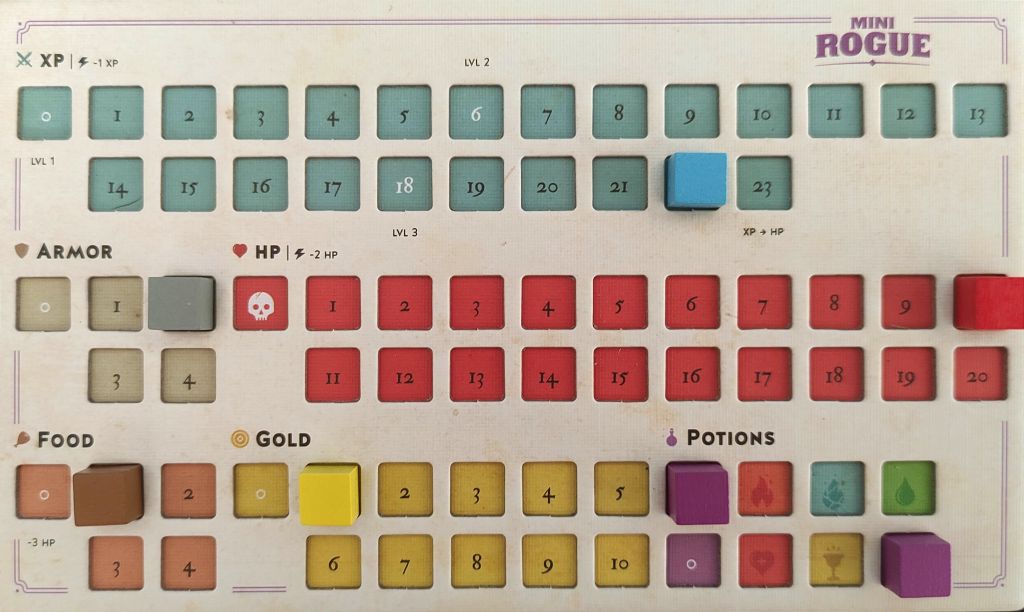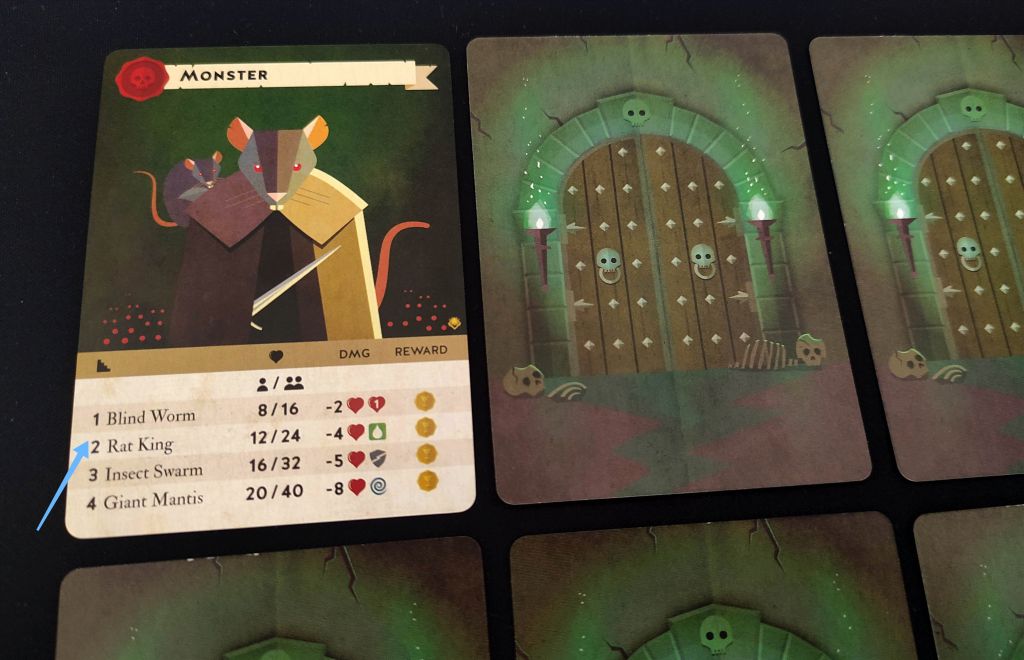 - 5 5 4 (el lobo tenía 7 de vida. Bastante poco para estar en la planta 4, pero es cierto que hacía bastante pupita de atacarme) (+1 Comida)